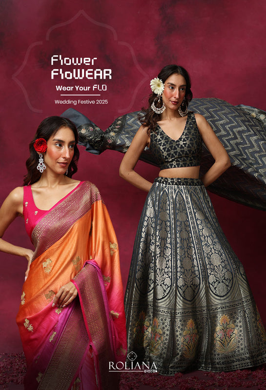 Make your trousseau timeless with gorgeous benarasi silk sarees from Roliana which can even be passed down as future heirlooms.